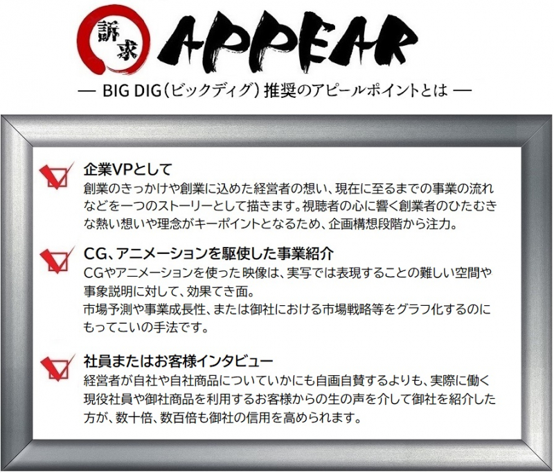 BIG DIGでは、収まりの良い体裁の整っただけの紹介動画はつくりません。