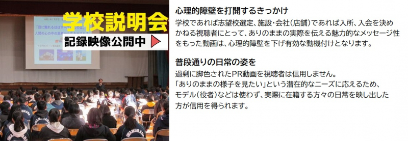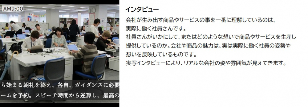 コーポレートサイトや採用はもちろん、企業セミナーや展示会、デイリーな営業ツールとしても幅広く活用できます。大手企業であれば、ロゴを見たりやCMソングを聞いただけで視認性がありますが、中小企業やベンチャー企業の場合、企業ブランディングの有効手段として各種のプラットフォームで訴求性のある動画/映像活用をおススメします。