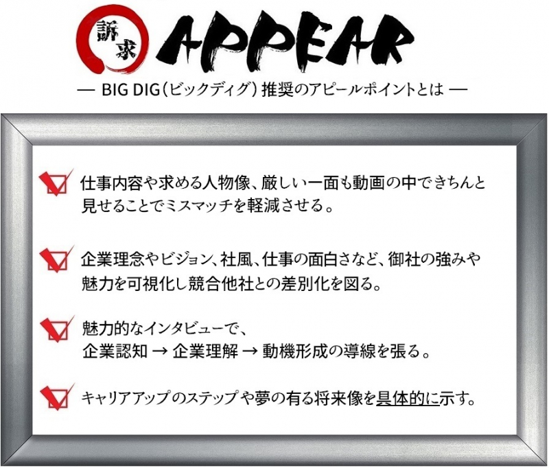 採用動画は、求職者の五感を刺激し、ひいては第六感にさえも訴えることの出来る最強の訴求ツールです。実際に働く自身の姿を想像させ、応募(入社) を検討するその目は、決して節穴ではないことを御社自身で証明(アピール) していきましょう。