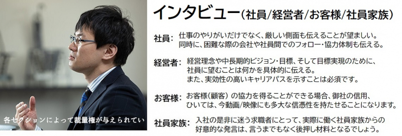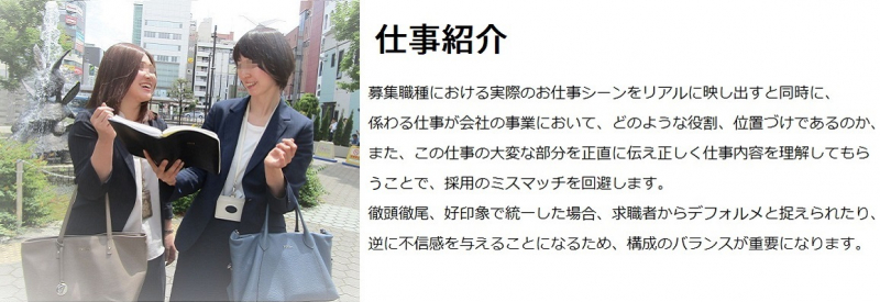 美辞麗句を並べたテキストベースの情報では、企業の上っ面(概要) は掴めますが実際の仕事内容や環境、現場で働く社員の姿、そして経営者の理念や人柄などを知ることは出来ません。